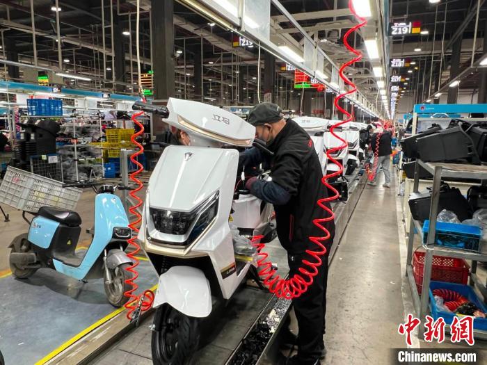 1月3日,台州一家车业集团的生产车间,5条生产线火力全开。(图片来源:中新网)