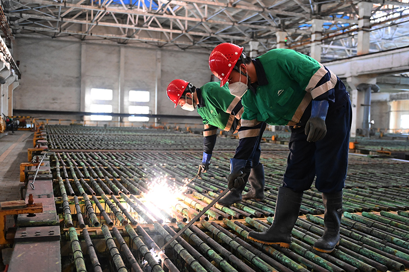 在辽宁沈阳一家汽车配套产品制造企业生产车间,工人们正在抓紧时间赶订单。(图片来源:央视网)