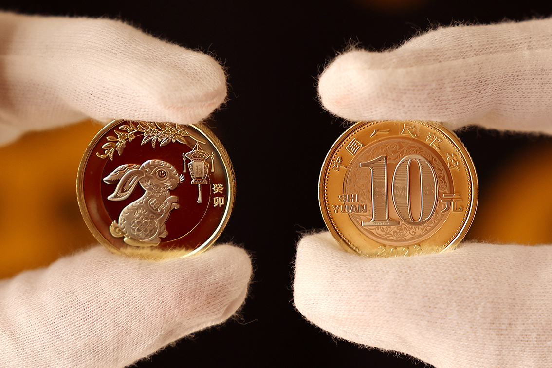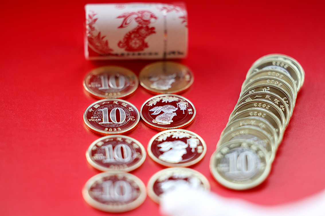 1月5日在四川内江拍摄的2023年贺岁双色铜合金纪念币。