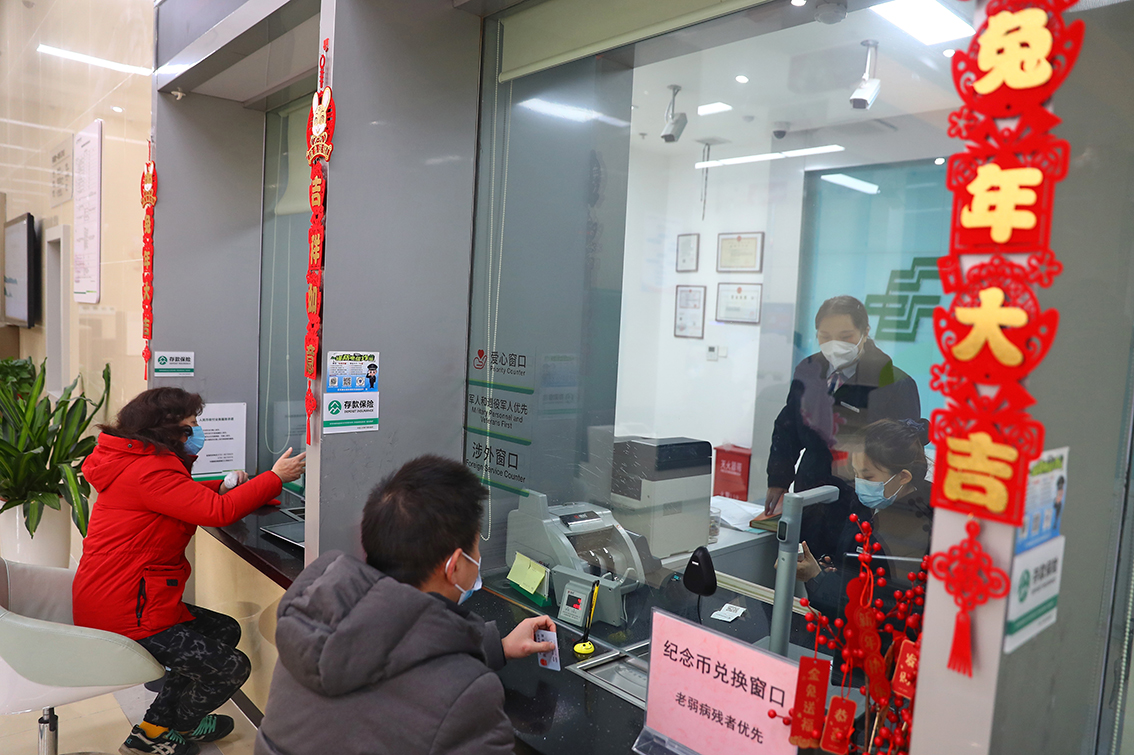1月5日,中行武汉黄陂支行,客户顺利兑换2023年贺岁普通纪念币。(图片来源:《长江日报》)