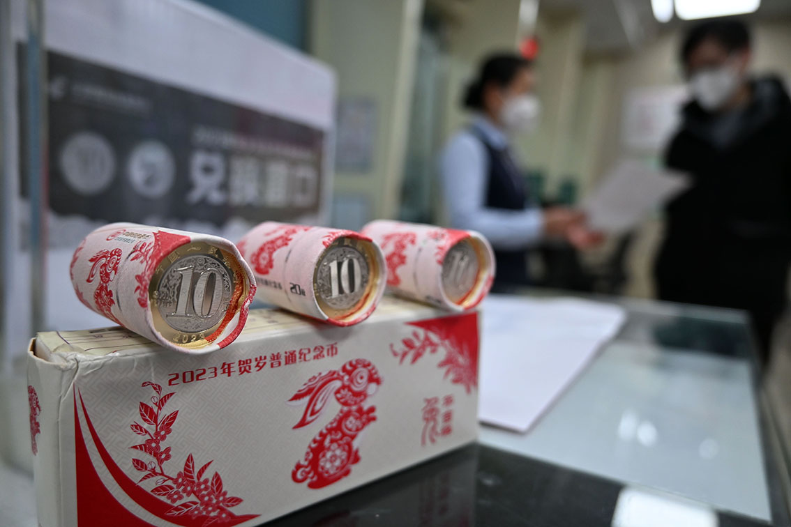 2023年1月5日,上海,2023年贺岁普通纪念币开启兑换。(图片来源:人民网)