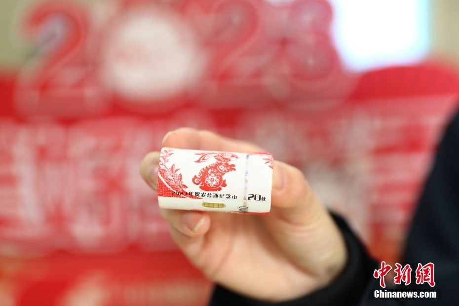 1月5日,中国邮政储蓄银行江西省分行营业部,工作人员展示2023年贺岁普通纪念币(20枚装)。(图片来源:中新网)
