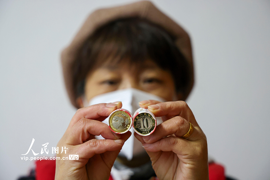 1月5日,山东省枣庄市居民展示兑换的2023年贺岁双色铜合金纪念币。