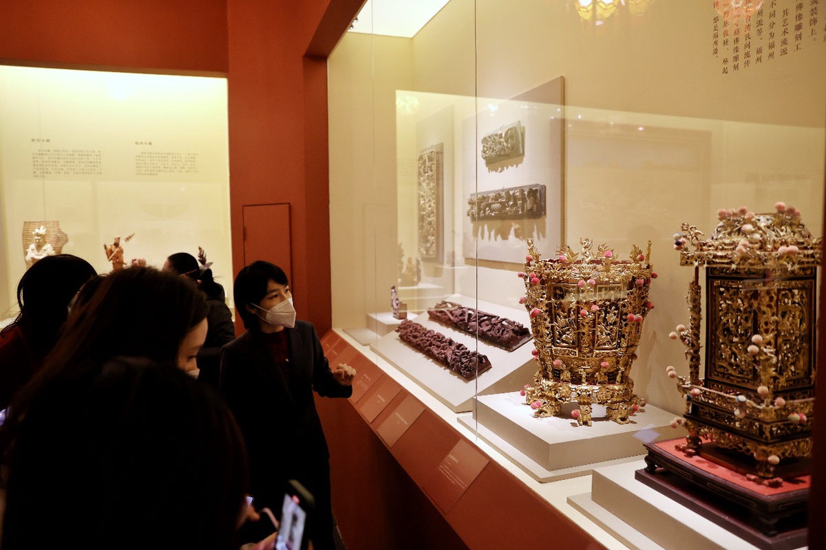 此次展览展品自明清至当代,时代跨越近四百年,从多方面展示了闽台艺术的继承性和发展性。图为展厅现场。(中新网发/国家博物馆供图)