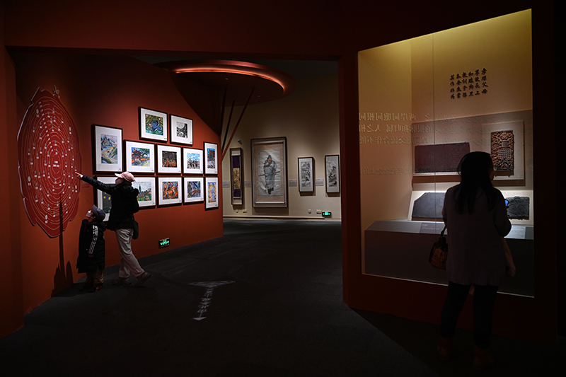 此次展览将开放至4月9日。图为1月8日,观众观看展览。(图片来源:中国日报网)