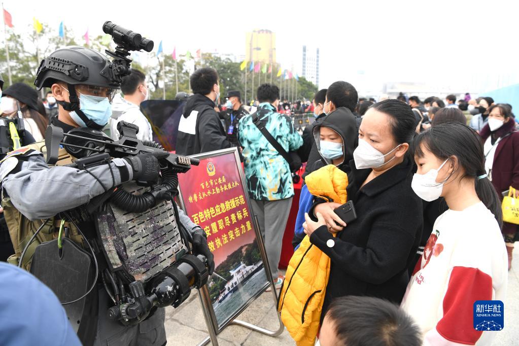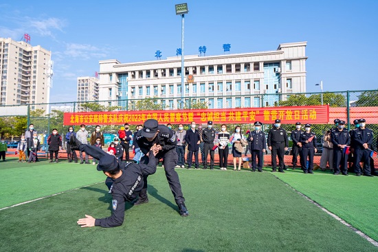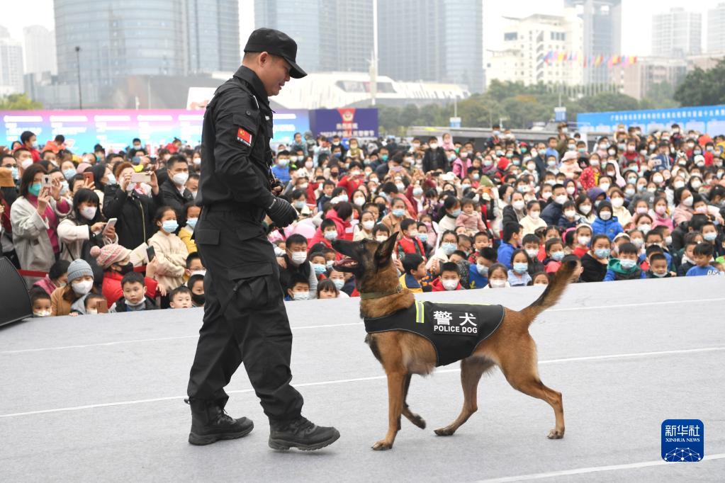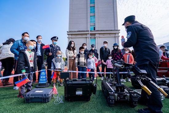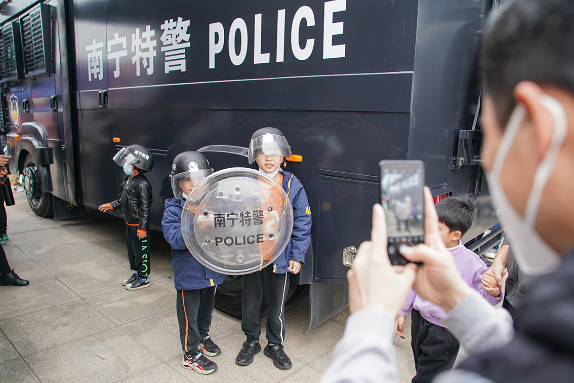 1月7日上午,广西北海市公安局特警支队联动北海市海城区法警大队、中国建设银行北海分行在特警训练基地举办了一场别开生面的警营开放日主题活动,图为开放日现场。(图片来源:人民网)
