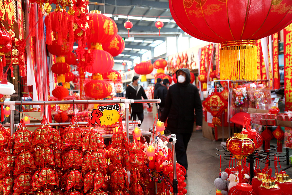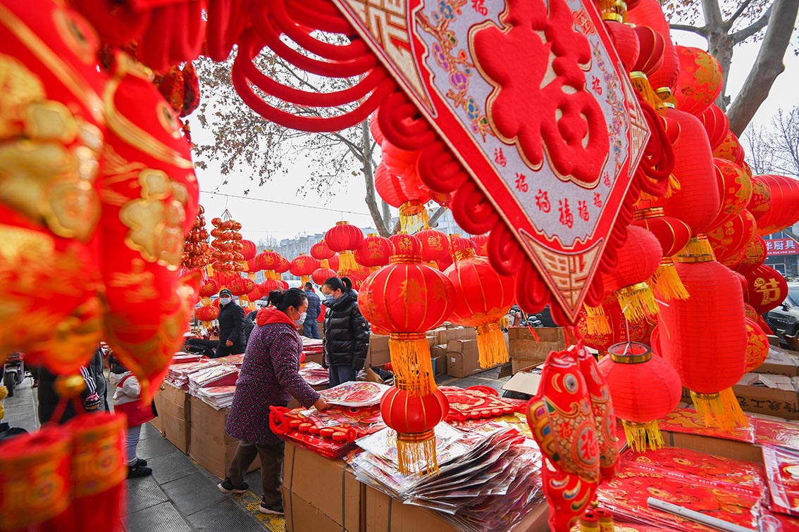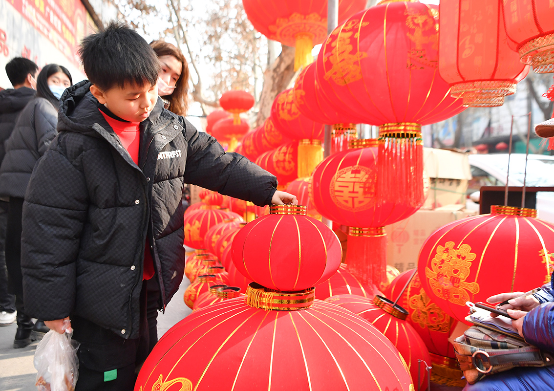 1月10日,市民在西安贝斯特综合市场选购灯笼。(图片来源:本文图片除标注外均自新华社)