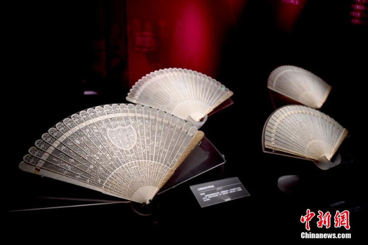 展览展出的清乾隆时期花草纹象牙折扇。(图片来源:中新网)