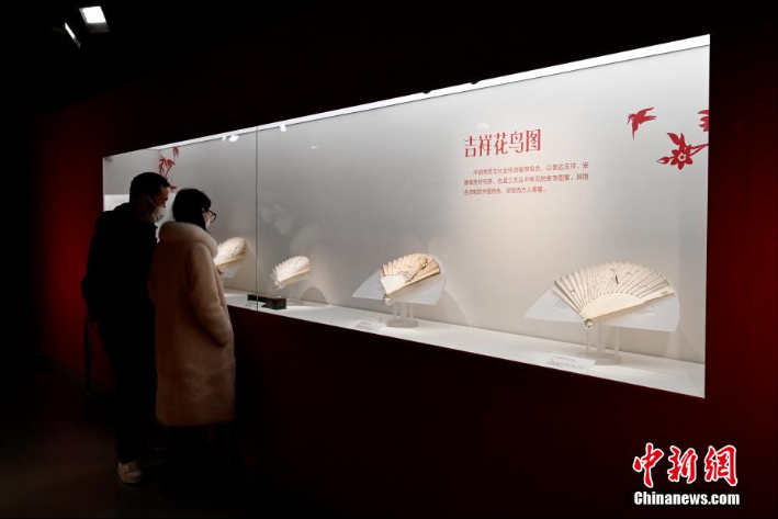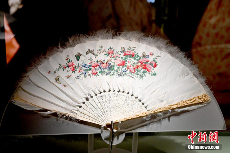 展览展出的清道光时期花蝶图鹅毛象牙折扇。(图片来源:中新网)