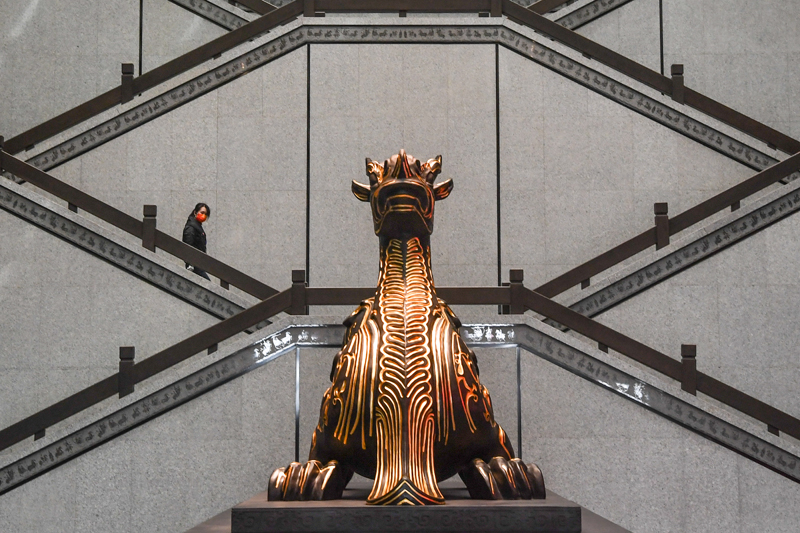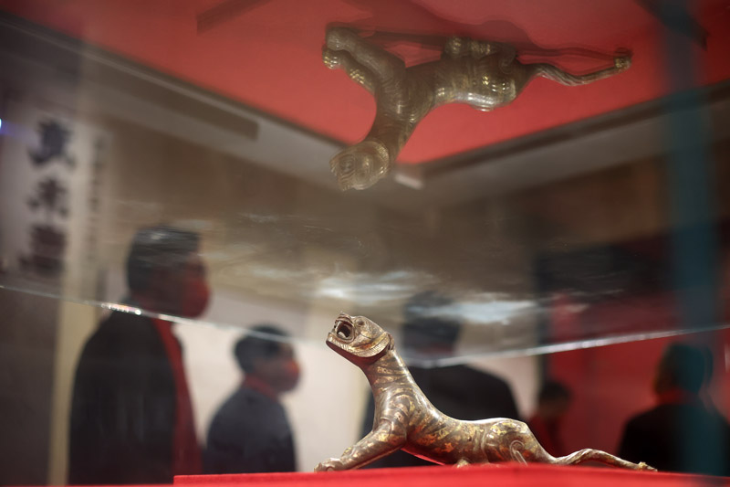 展厅内展陈的西汉时期铜虎。(图片来源:中新社)