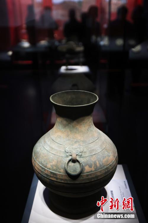 展厅内展陈的汉代铺首衔环耳铜锺。(图片来源:中新网)