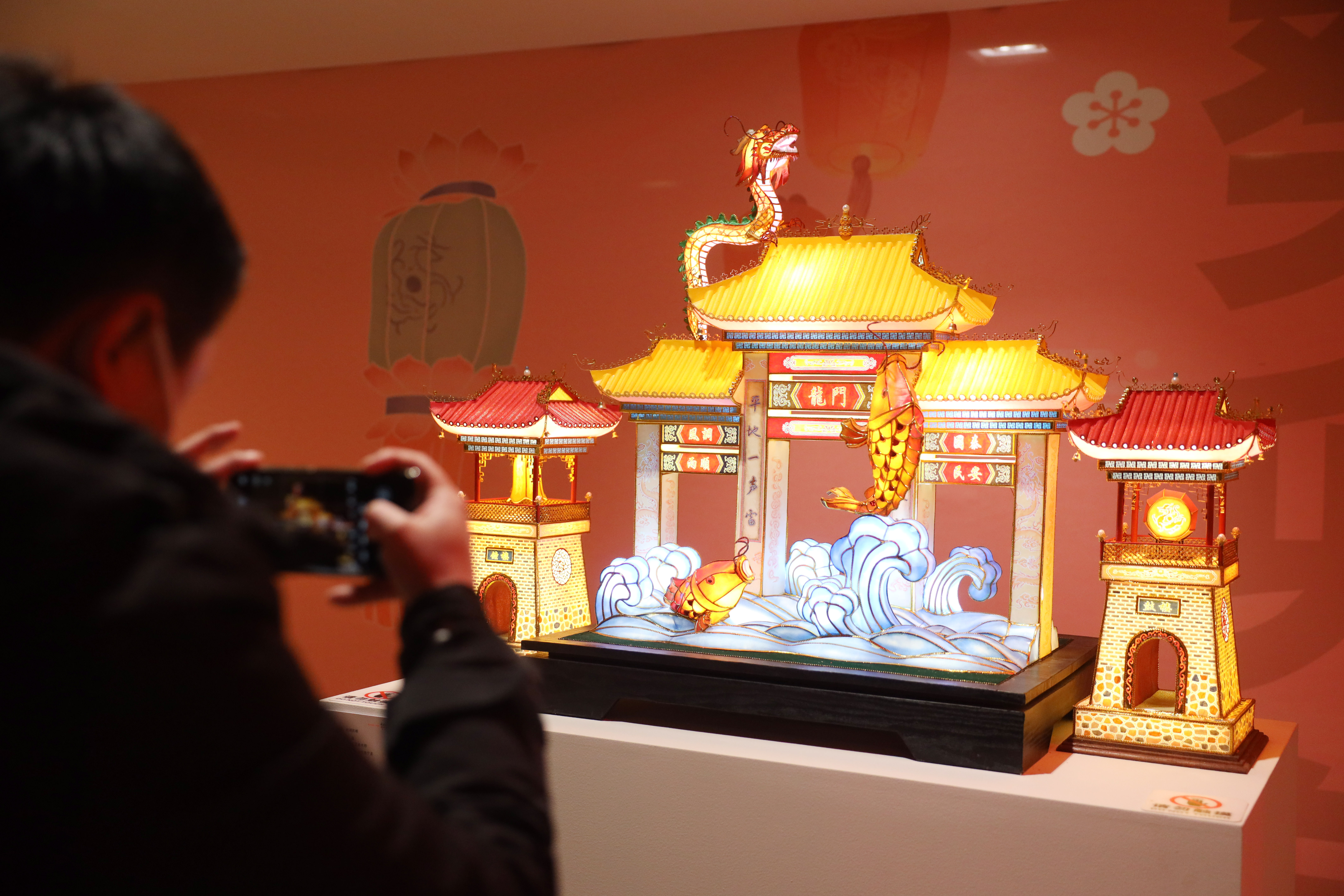 2023年1月14日,集雕刻,绘画,书法、造型、配色,漂染于一身的泉州花灯吸引观众观赏。