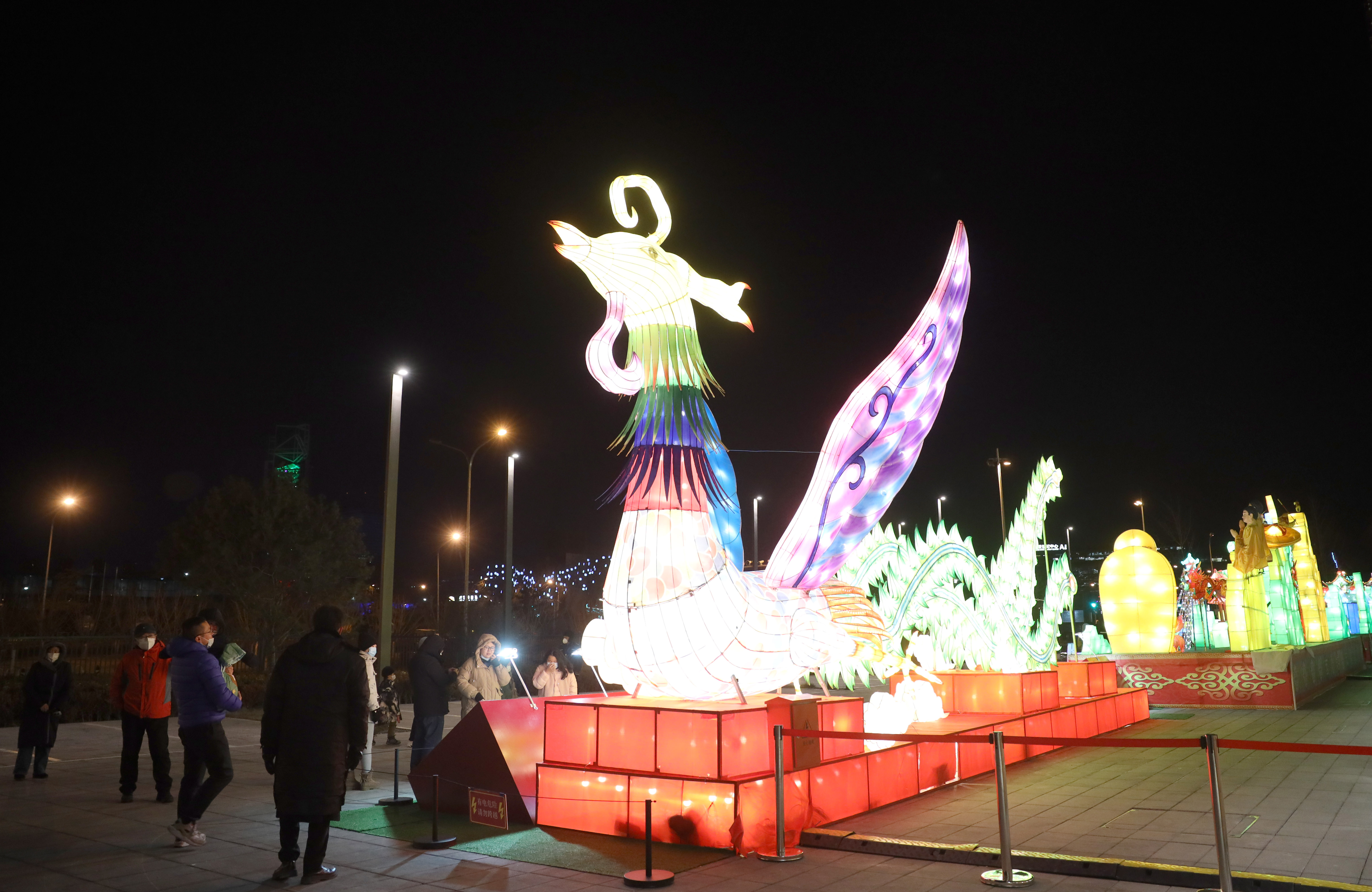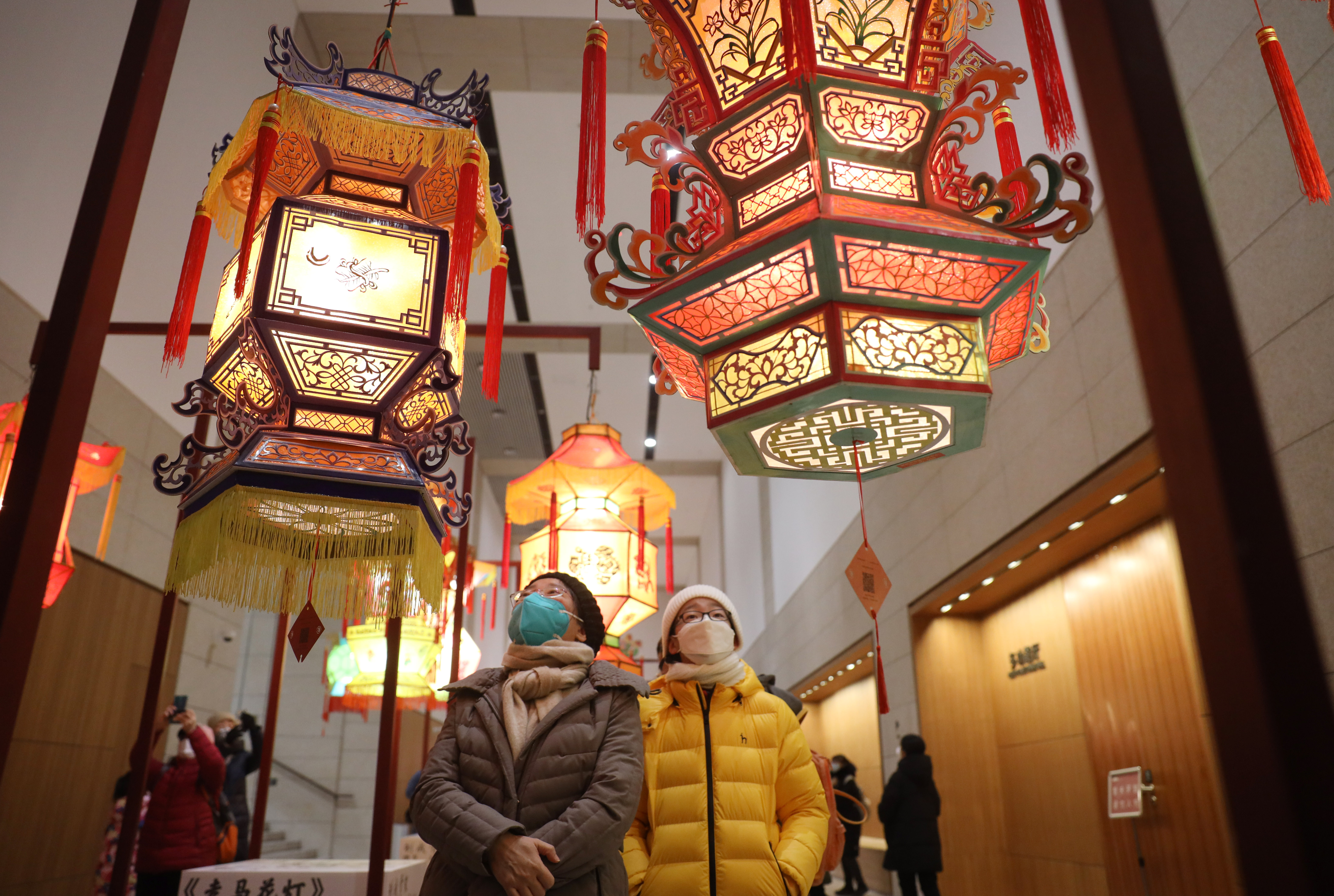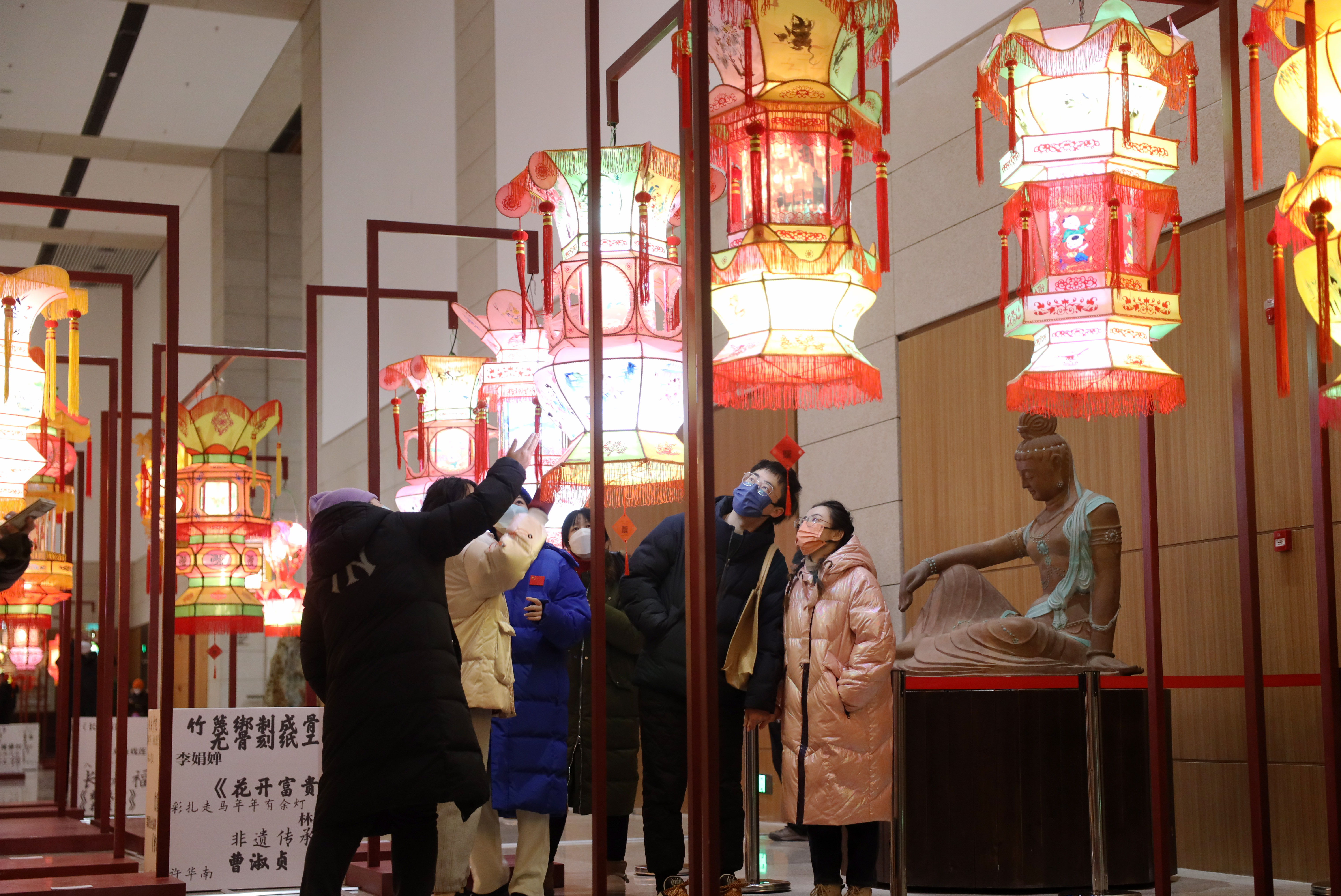 2023年1月14日,传统花灯相聚中国非物质文化遗产馆,吸引民众观赏。
