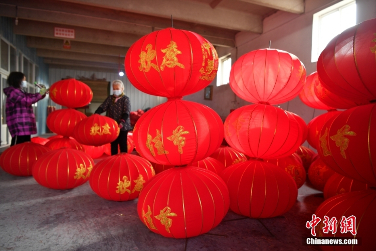 被誉为“中国宫灯第一村”的河北省石家庄市藁城区屯头村,宫灯匠人赶制宫灯,供应春节市场。河北省藁城梅花镇屯头村,拥有制造、销售宫灯200多年历史,已成为省级非物质文化遗产。(图片来源:中新网)