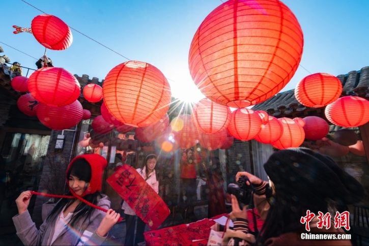 北京一家“藏在”四合院里的小咖啡店挂起红灯笼,营造出浓厚的中国传统新年氛围,吸引市民前往“打卡”。(图片来源:中新网)