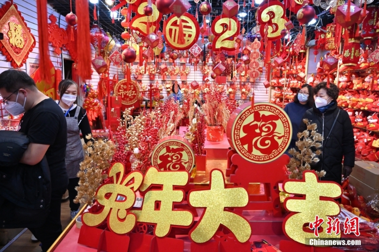 农历腊月二十四,春节前的最后一个周日假期,上海的商场、街头处处洋溢着红红火火的喜庆氛围,吸引了不少民众前来感受年味。(图片来源:中新网)
