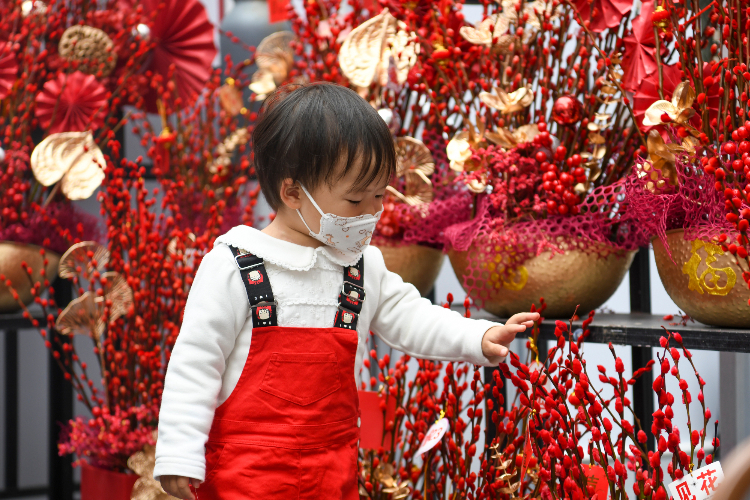 1月15日,一名小朋友在花市主会场赏花。当日,2023深圳迎春花市正式开市,不少市民和游客来到设在福田区的主会场赏花、购花,感受浓浓年味。2023深圳迎春花市举办时间为1月15日至1月21日。(图片来源:新华社)