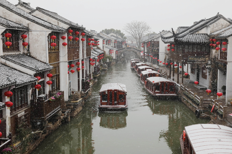 1月15日拍摄的江苏苏州山塘古街雪景。(图片来源:新华社)