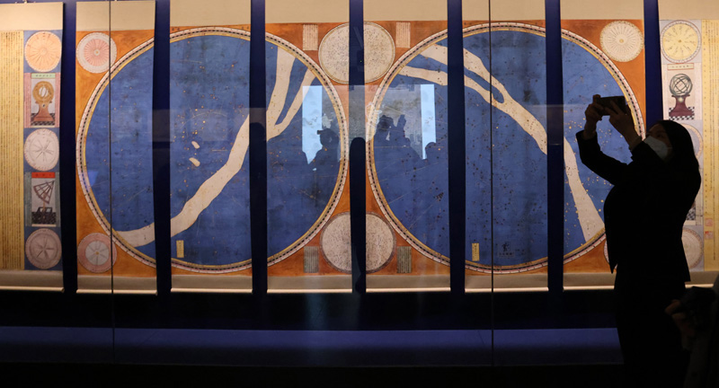 “明清档案”专题展出的明崇祯七年(1634)由大学士徐光启和西洋传教士汤若望共同参与绘制的《赤道南北两总星图》(仿制品)。(图片来源:新华社)