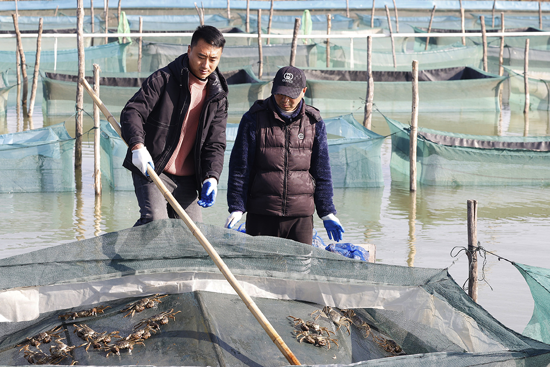 迎销售旺季 中国多地螃蟹养殖户备战春节市场