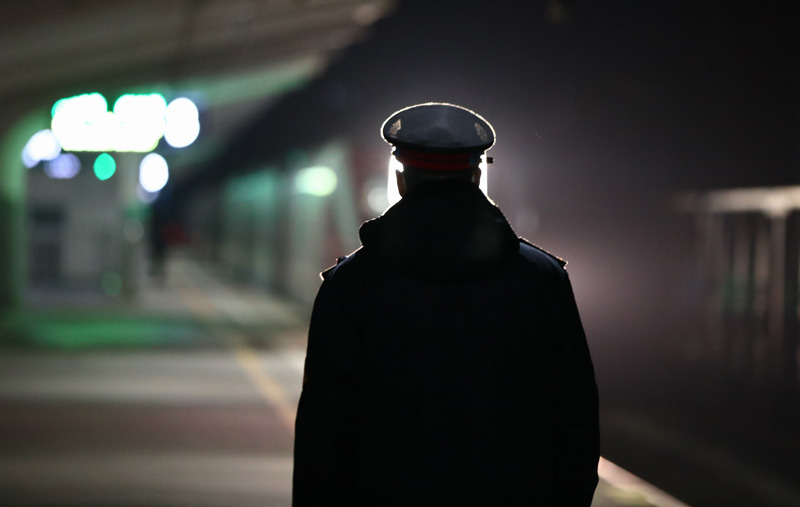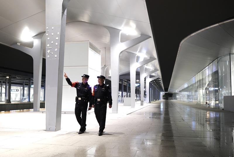 1月21日,农历除夕,浙江嘉兴车站派出所民警坚守岗位,守护民众出行路。(图片来源:中新社)