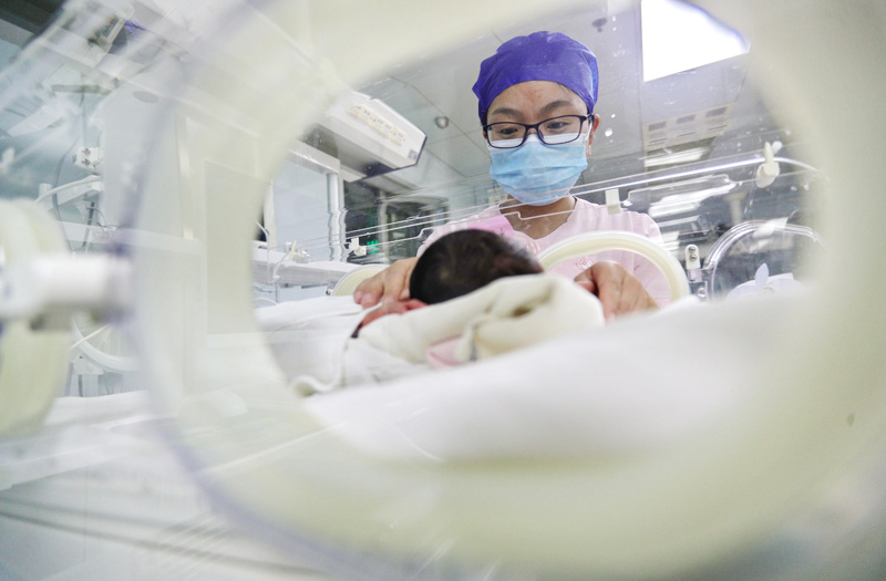 1月21日,河北省秦皇岛市妇幼保健院新生儿科医护人员在护理新生婴儿。(图片来源:新华社)