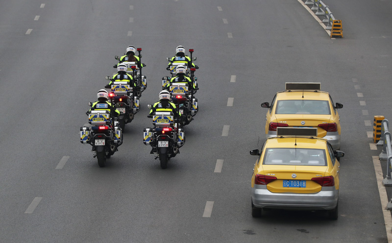 1月21日,云南省昭通市昭阳区交警一大队女子骑警队在骑行巡逻。(图片来源:新华社)