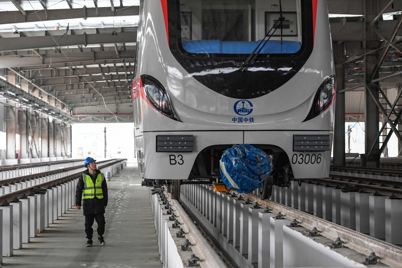 1月21日,值班人员在贵州省贵阳轨道交通三号线花溪南停车场巡逻检查。(图片来源:新华社)