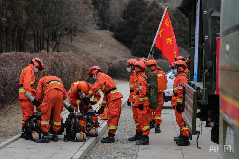 除夕当天,甘肃省森林消防总队黄陵驻防队伍一班长剡连仓带着队员们开始了工作。(图片来源:央广网)