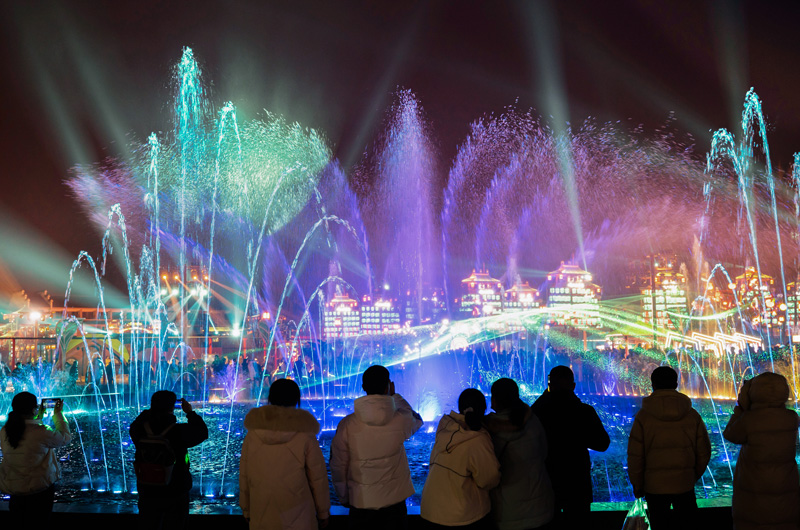 1月22日,市民和游客在安徽省马鞍山市的长江不夜城景区观赏灯光秀。