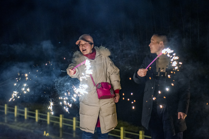 1月21日除夕夜,在安徽省芜湖市繁昌区峨溪河畔,市民燃放烟花迎新春。