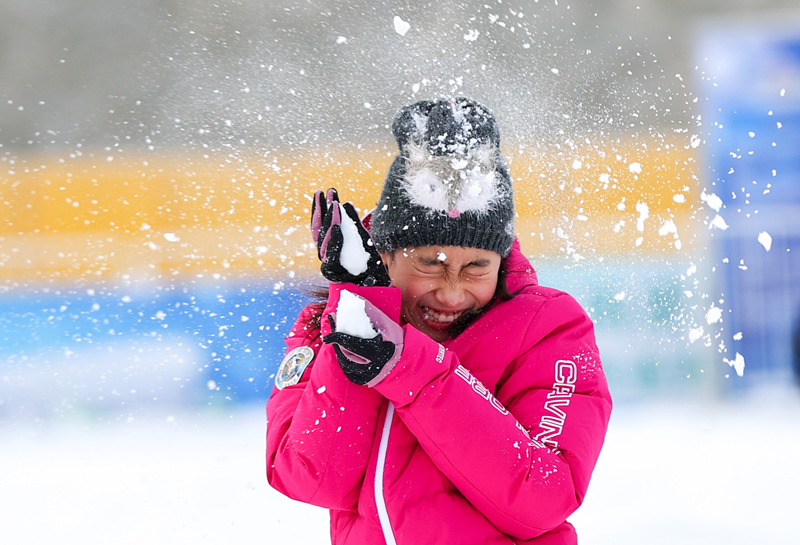 1月26日正月初五,市民在国家体育场(鸟巢)附场的“鸟巢欢乐冰雪季”打雪仗,畅享冰雪乐趣。(图片来源:中新社)
