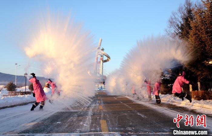 游客在“中国最冷小镇”黑龙江省大兴安岭呼中区体验泼水成冰。(图片来源:中新网)