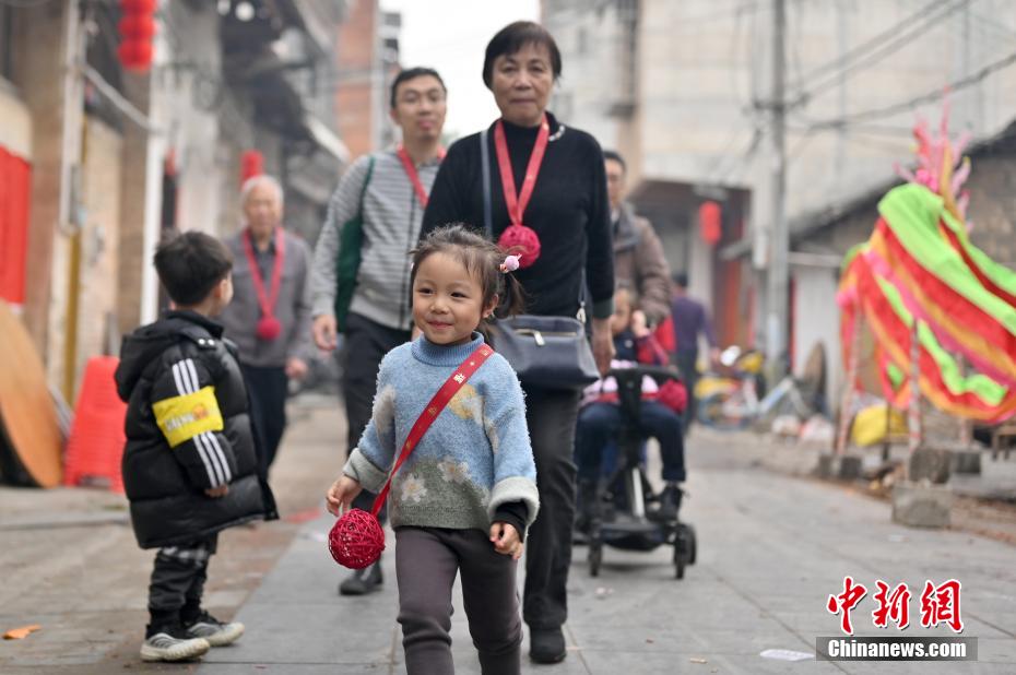 孩童身戴“龙珠”感受炮龙文化。(图片来源:中新网)