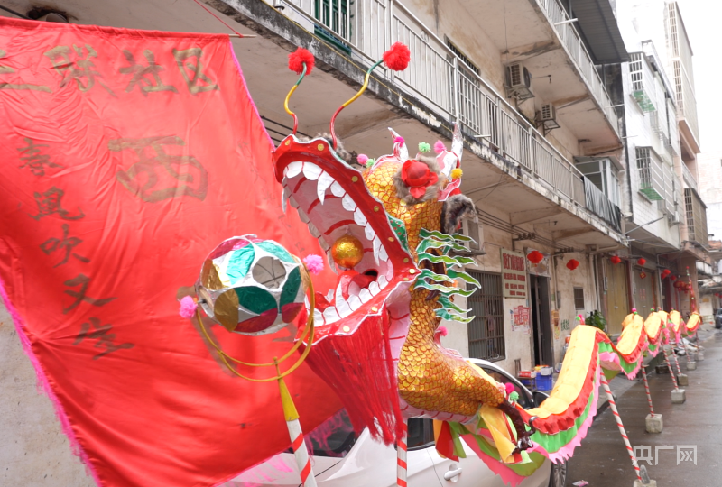 精美的炮龙在巷口蓄势待发。(图片来源:央广网)