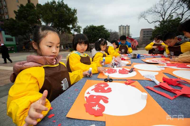 2月1日,湖南省衡东县文体广场张灯结彩,人头攒动。市民们踊跃剪纸、搓元宵、猜灯谜,喜气洋洋,提前共贺佳节。(图片来源:央广网)