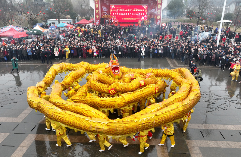 2月6日,人们在全椒县太平文化广场观看舞龙表演。(图片来源:新华社)