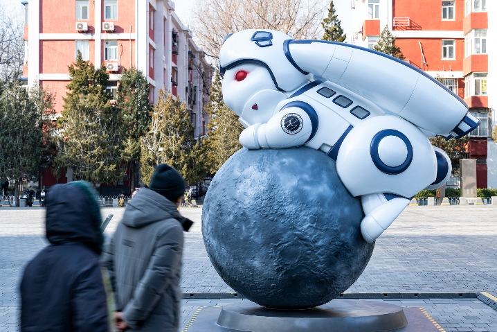 太空兔主题雕塑吸引过往市民目光。(图片来源:中新网)