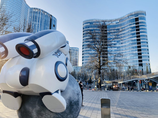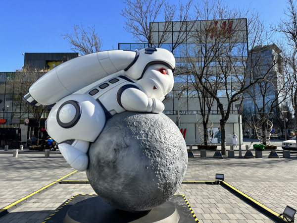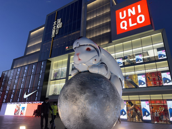 北京三里屯太古里西区呈现“科幻玉兔”公共艺术作品。(图片来源:中国网客户端)