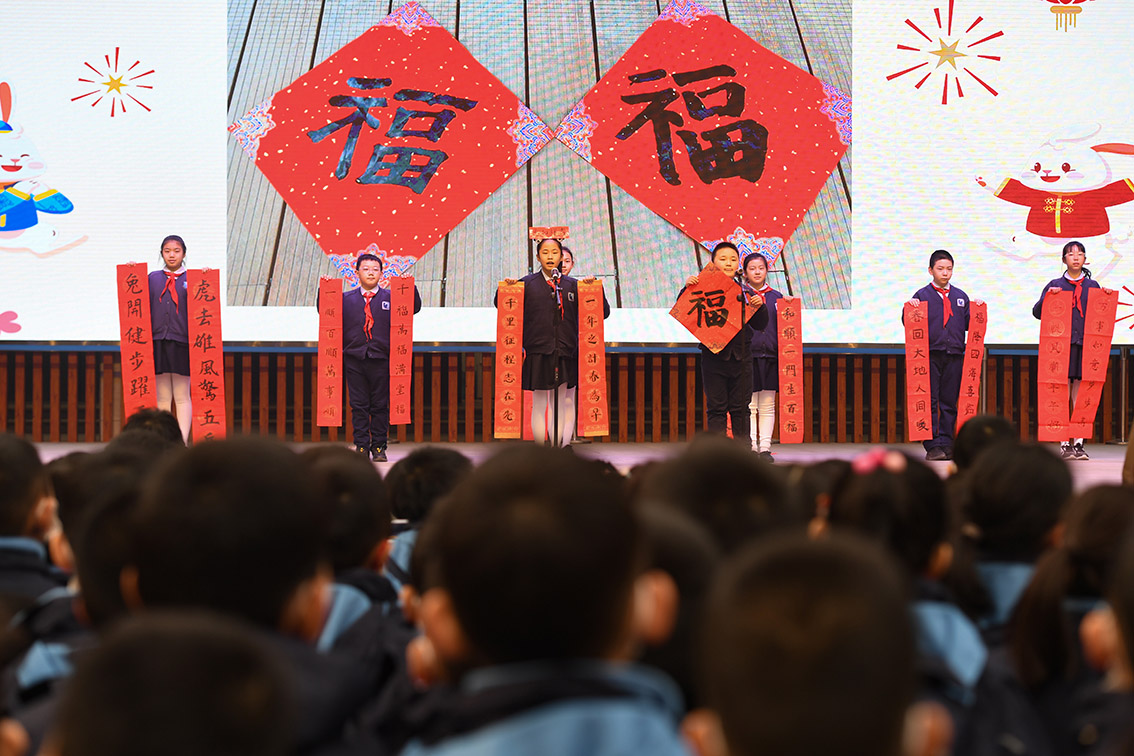 2月6日拍摄的西安市新城区后宰门小学开学典礼现场。