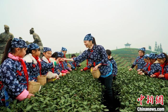 2月6日,四川省泸州市纳溪区护国镇中心小学校五年级一班的同学们,走进护国镇梅岭村“纳溪特早茶”种植园举行“开学第一课”,通过体验采茶、古法制茶、品茶以及学习茶文化,让学生在乐趣中体验劳动的艰辛,感受中华茶文化的独特魅力。(图片来源:中新网)