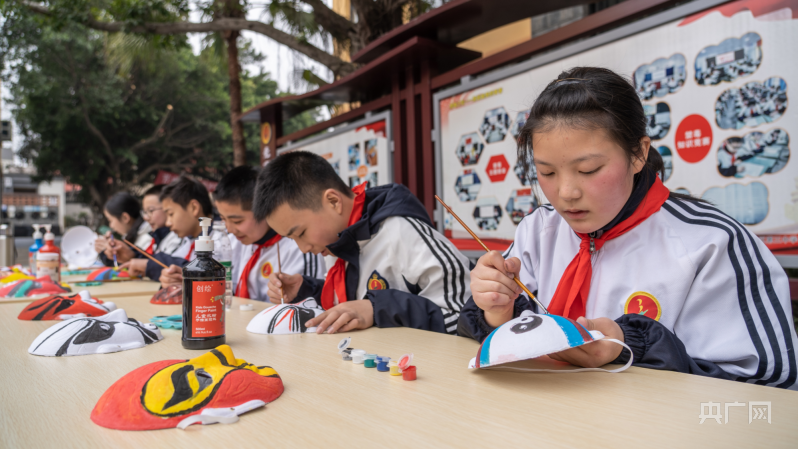 2月6日,由中共眉山市彭山区委宣传部主办,彭山区文广旅局、彭山区第三中学承办的2023年“开学第一课——非遗进校园”文化文艺志愿服务活动在彭山区第三中学举行。图为同学们在制作脸谱。(图片来源:央广网)