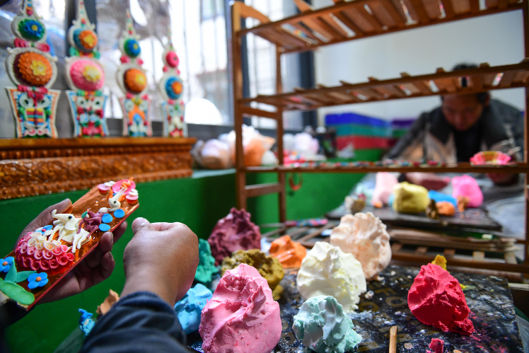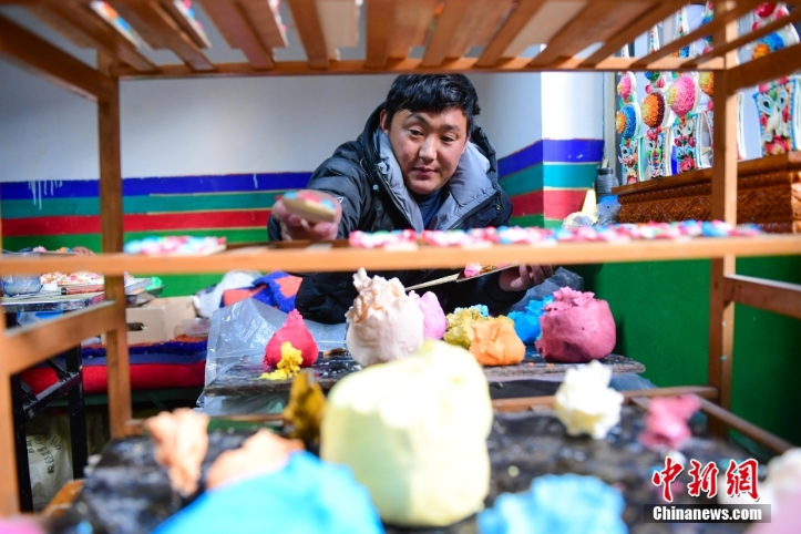 迎藏历新年 西藏拉萨手工艺人制作酥油花
