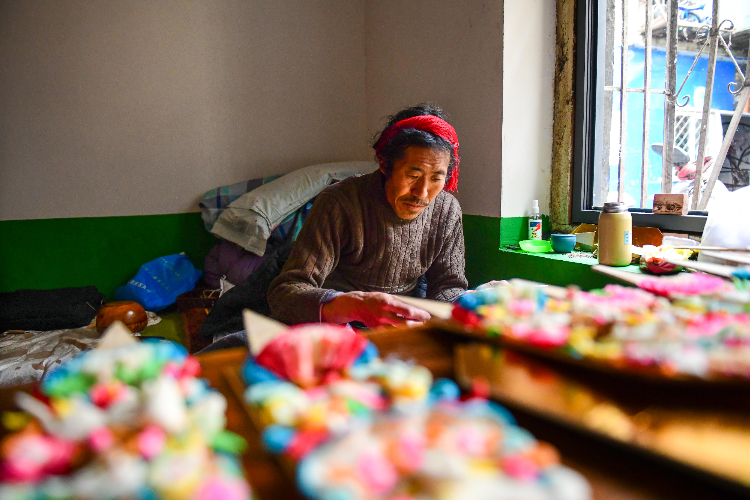 2月7日,手工艺人在拉萨制作酥油花。(图片来源:中新社)