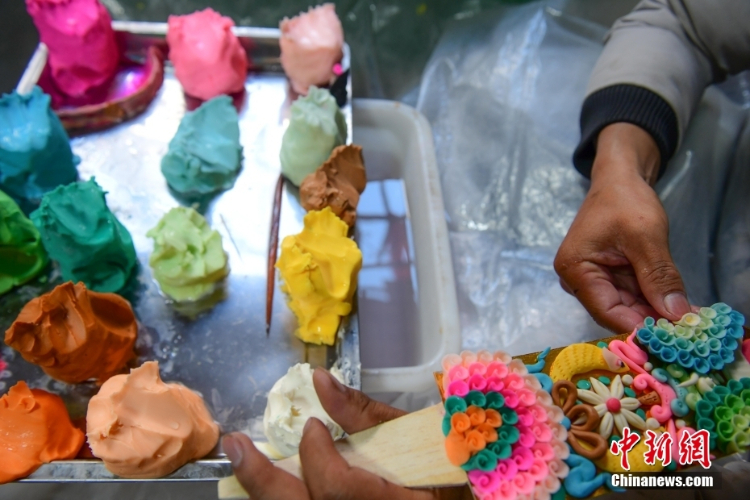 2月7日,手工艺人在拉萨制作酥油花。(图片来源:中新网)
