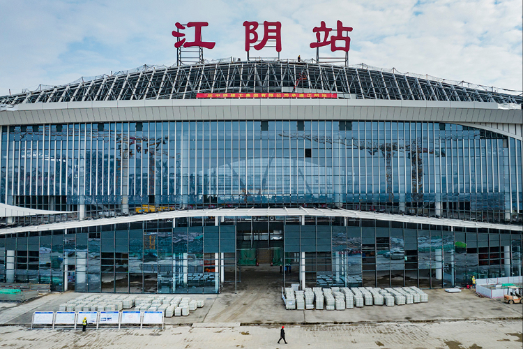 中新社报道,江阴站站房由中国中铁建工集团承建,目前装饰装修作业有序推进。该站房以“江尾海头、巨轮启航”为设计理念,融入江阴“河网纵横、江河交汇”的地域元素,凸显当地独特的人文气质。