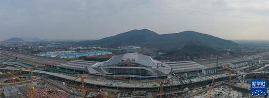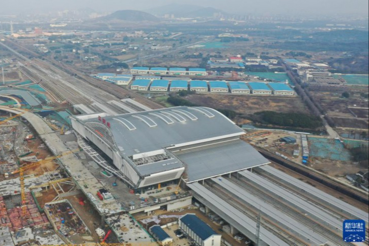 2月7日拍摄的江苏南沿江铁路江阴站站房。(图片来源:新华网)