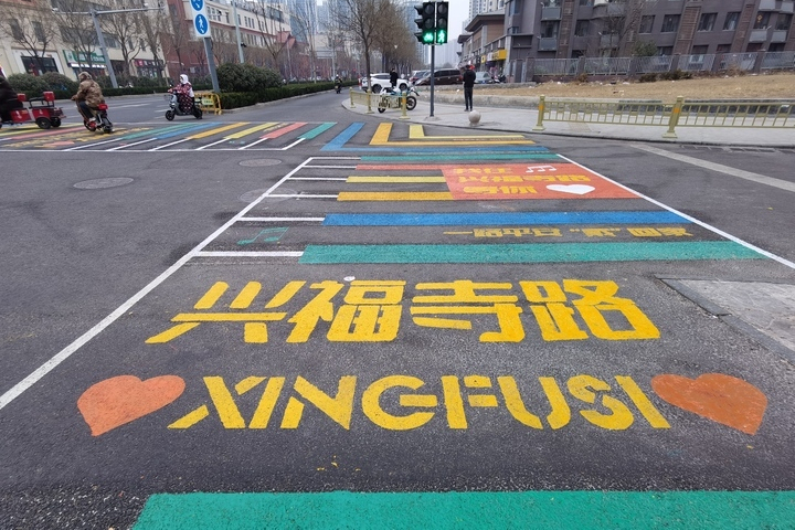 2月9日,济南首条“彩虹琴键斑马线”正式完工亮相。(图片来源:中新社)