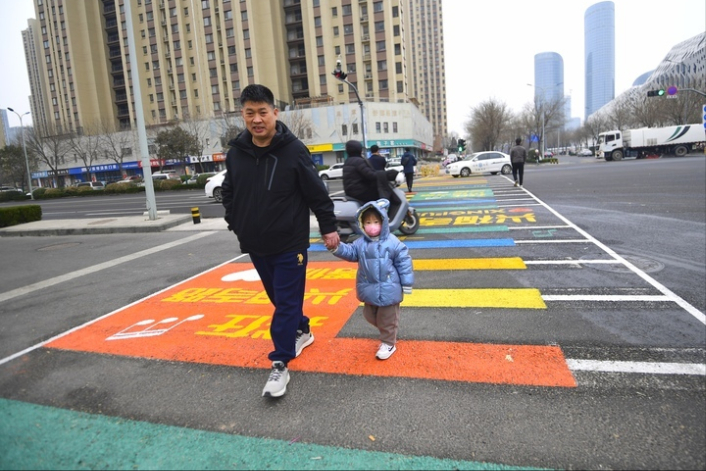 行人通过斑马线。(图片来源:济南日报)