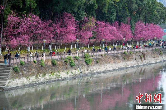 2月12日,四川省成都市植物园、望江公园等处的梅花、山樱花、海棠渐次盛开,络绎不绝的市民和摄影爱好者纷至沓来赏花拍照忙。(图片来源:中新网)
